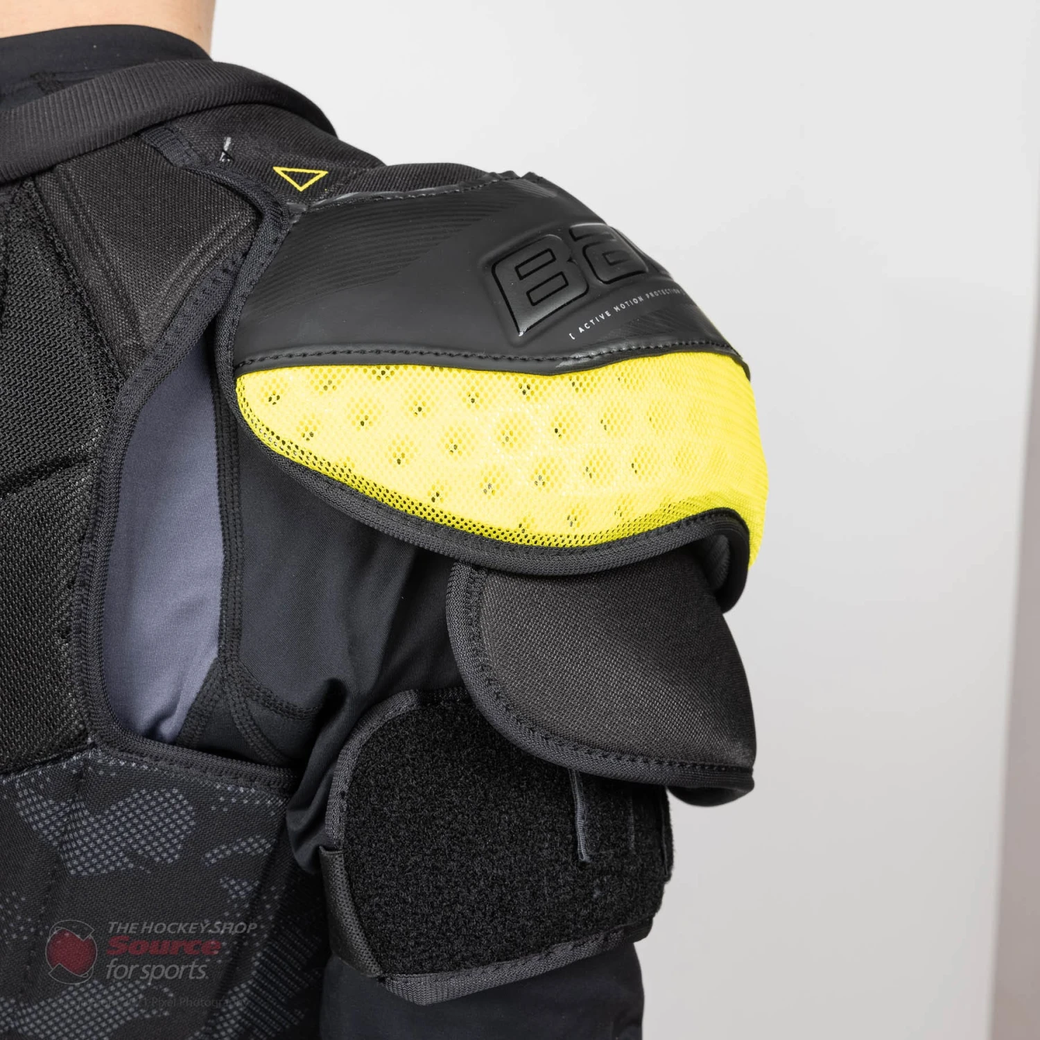 The Bauer Matrix offers low profile molded shoulder caps. They also feature Bauer’s new Active Motion Protection (AMP) technology with Vented Armour Foam that allows the shoulder cap to move with you. The low profile keeps you agile and quick on the ice while still protecting you from high impacts.