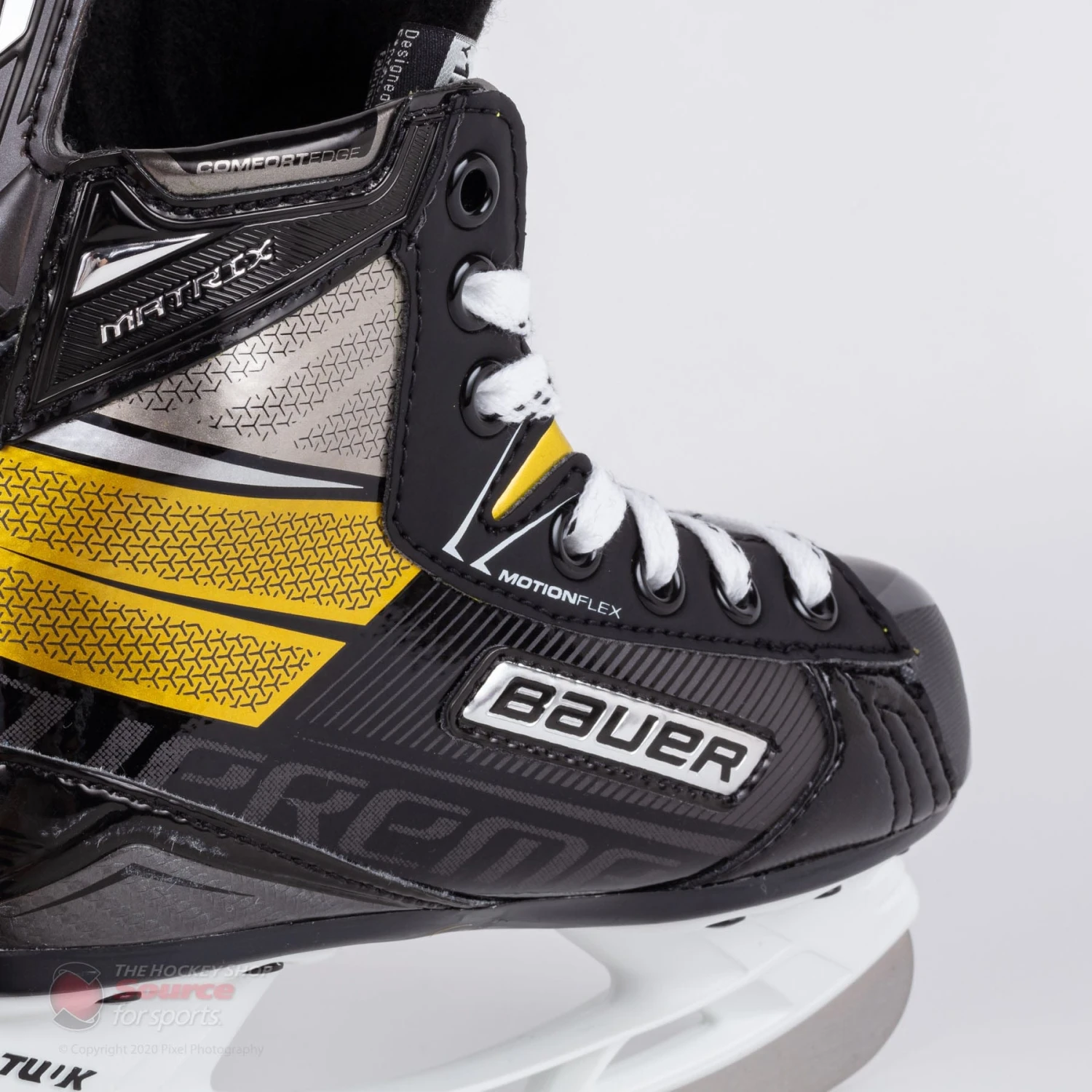 Bauer has constructed the Supreme Matrix with the focus on performance level hockey players. The Supreme Matrix features a Fiber composite quarter package with Motion Flex technology. The Motion Flex Technology used in the Matrix increases stability in the boot while offering exceptional ankle flexion. Comfort Edge Padding compliments the top of the boot to reduce bite when performing starts, stops, and aggressive tight turns.