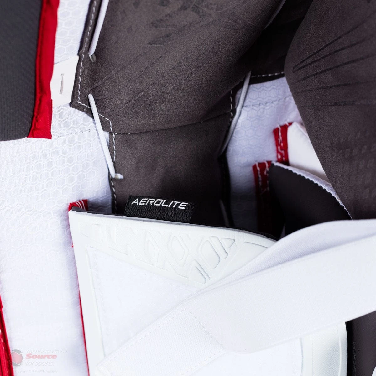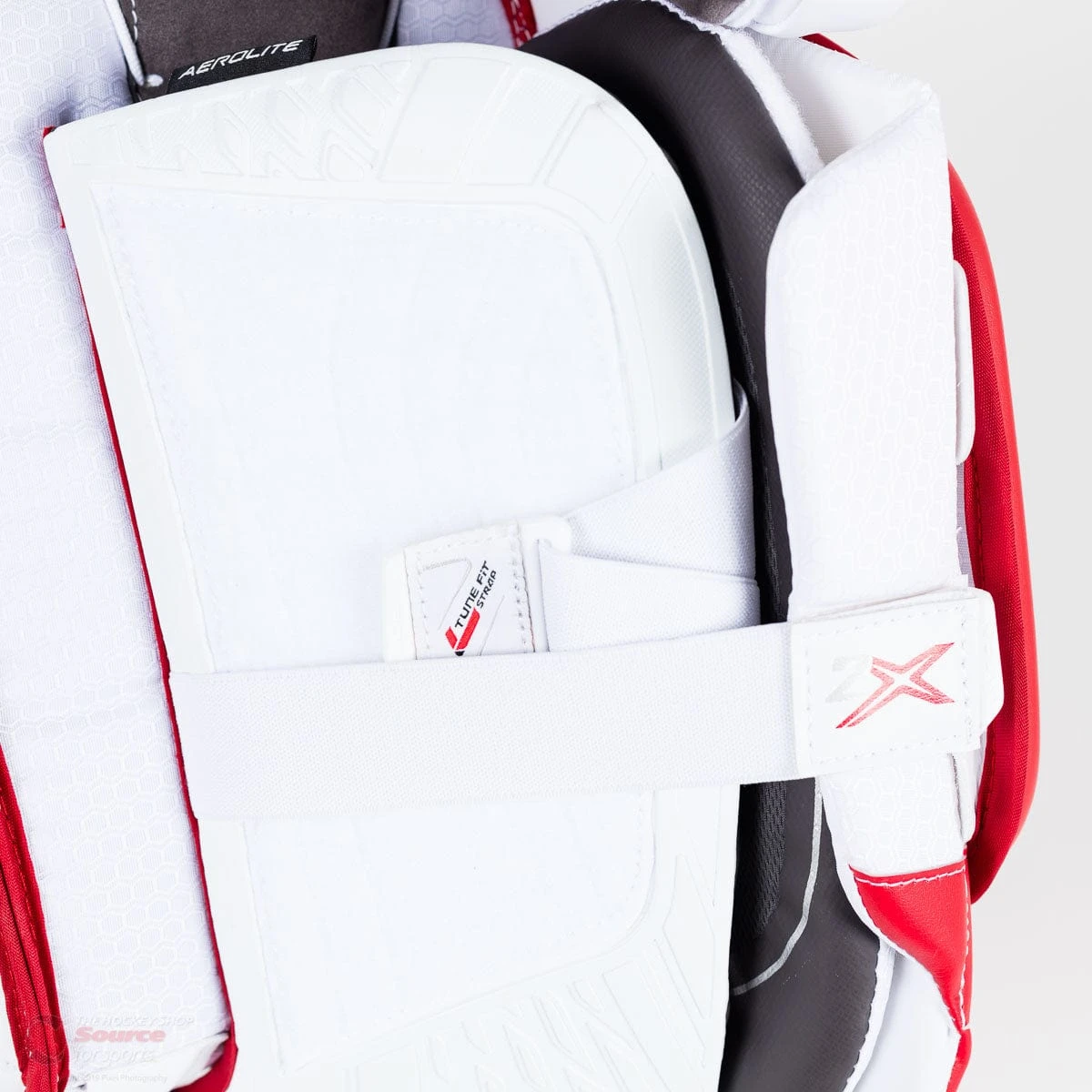 Bauer has equipped the 2X with a 45-degree Stabilislide Knee block, lined with Ax Suede Quattro. The knee block is designed to raise you off the ice and provide a solid base from when in the butterfly. Ax Suede Quattro is Bauers sanitized odour resistant treatment to fight against any bacterial or fungal growth, keeping gear is top condition and clean. Bauer has also made the knee wing adjustable/removable for a more customizable fit.
