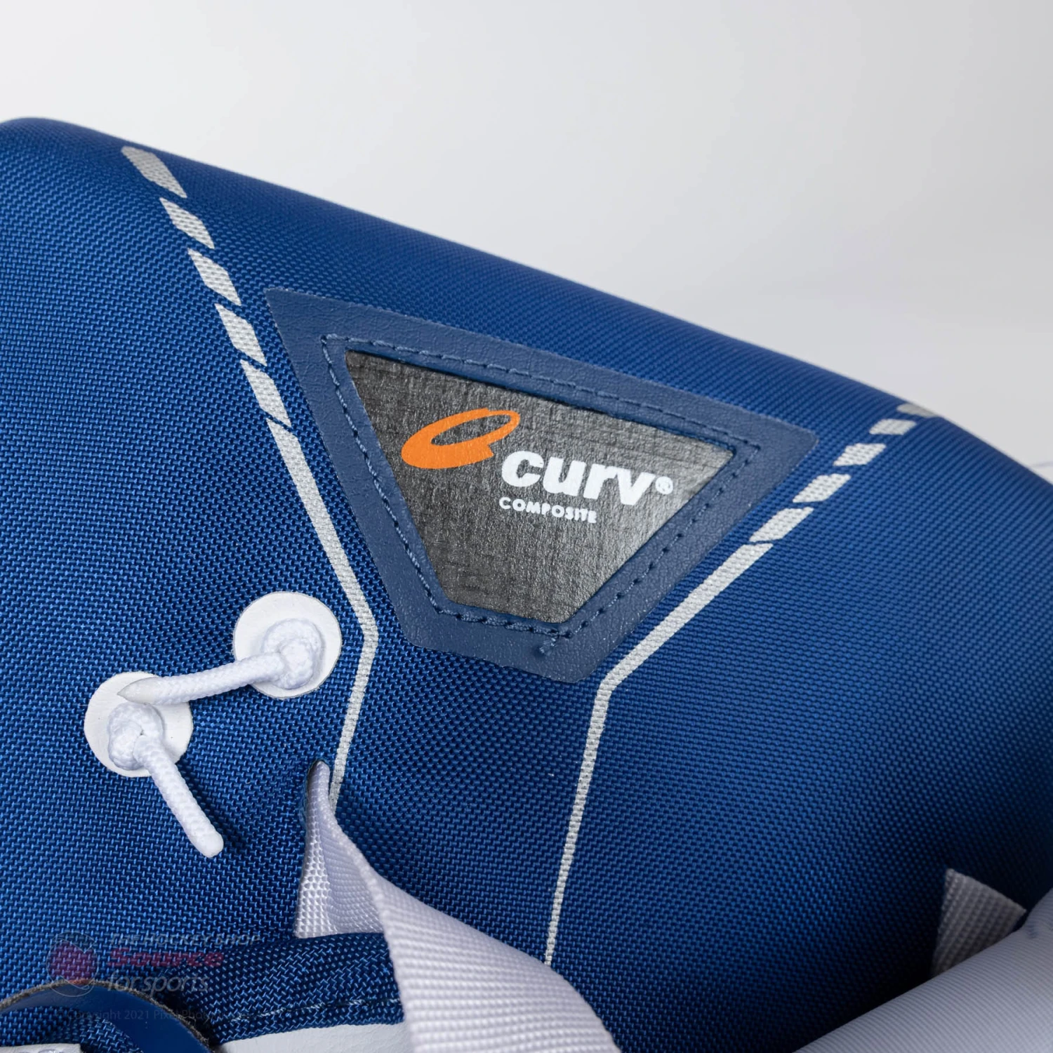 The 3X catcher uses a true one-piece cuff designed to maximize the catching area while the Curv reinforced construction makes for a more impact resistant, lightweight construction.