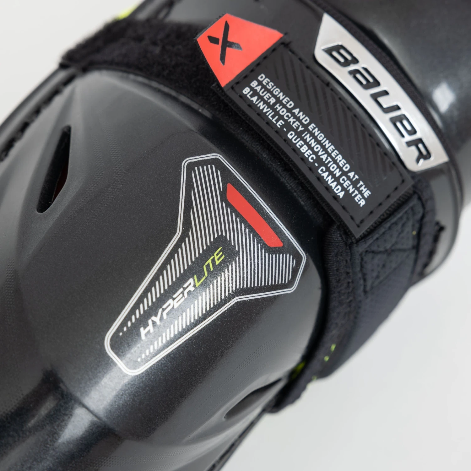 Bauer rolls out the new Vapor Hyperlite protective series for the 2022 season. The shin guards are equipped with an X-Lite Shield cap and ergodynamic design, Hyperlite HD foam, Dynaflex anchor straps, a Thermocore Zero liner, and EXOLite skin on the calf and calf guard. With the new Hyperlite line of protectives, Bauer continues to develop an ideal line for the most agile out on the ice.
