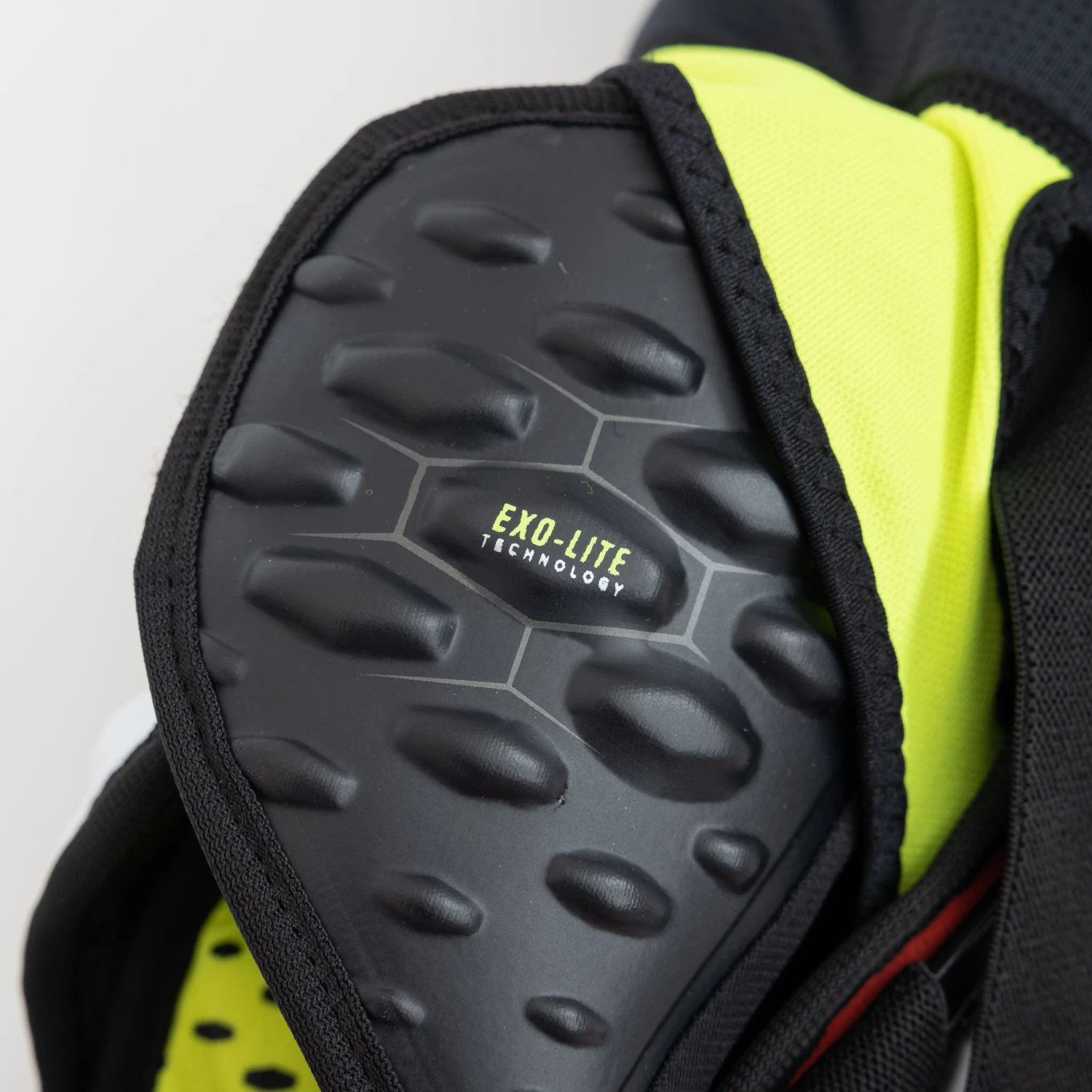 The Vapor Hyperlite shin guards are outfitted with EXOLite skin on the calf and calf guard. EXOLite skin is known for its amazing ability to absorb impact energy, which is why you’ll find it across the entire Hyperlite collection. Most shin guards won’t protect this area to the extent of including a shield here. EXOLite material is good because it adds protection without sacrificing any mobility to do so.