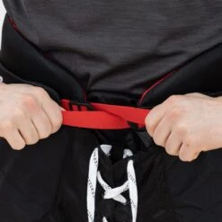 The pants use skate lace ties coupled with a wrap-around belt with a cinching closure system. This basically means that instead of pulling the belt in one direction, you would pull both from the left and right. This system is built to be a bit more efficient and easier to use than the classic quick strap.
