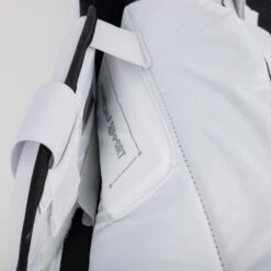 The pads use Bauer’s Cortech calf plate. which is designed to provide a greater level of protection and support to the goaltender’s lower leg and calf muscles, reducing the risk of injury and improving overall comfort when in motion on the ice. The Cortech calf plate is constructed using a series of layered materials, including high-density foam and composite inserts. These materials are strategically placed in the calf area of the pad to provide a high level of impact protection and support.