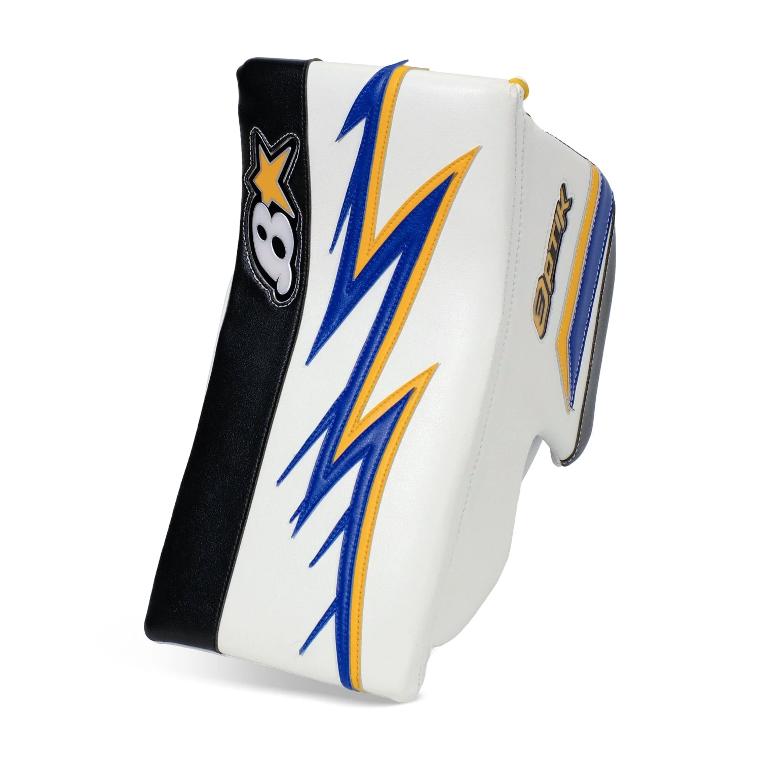 The Brian’s G-NETik V Senior Goalie Blocker incorporates Brian’s new carbon composite Bri-Core to improve rebound explosivity, stiffness, and rigidity. Along with the new graphic, Brian’s continues to use the BOA system to ensure a tight and effective adjustment system. The G-NETik series stands out in its versatility, making it an ideal set for hybrid-style goalies.