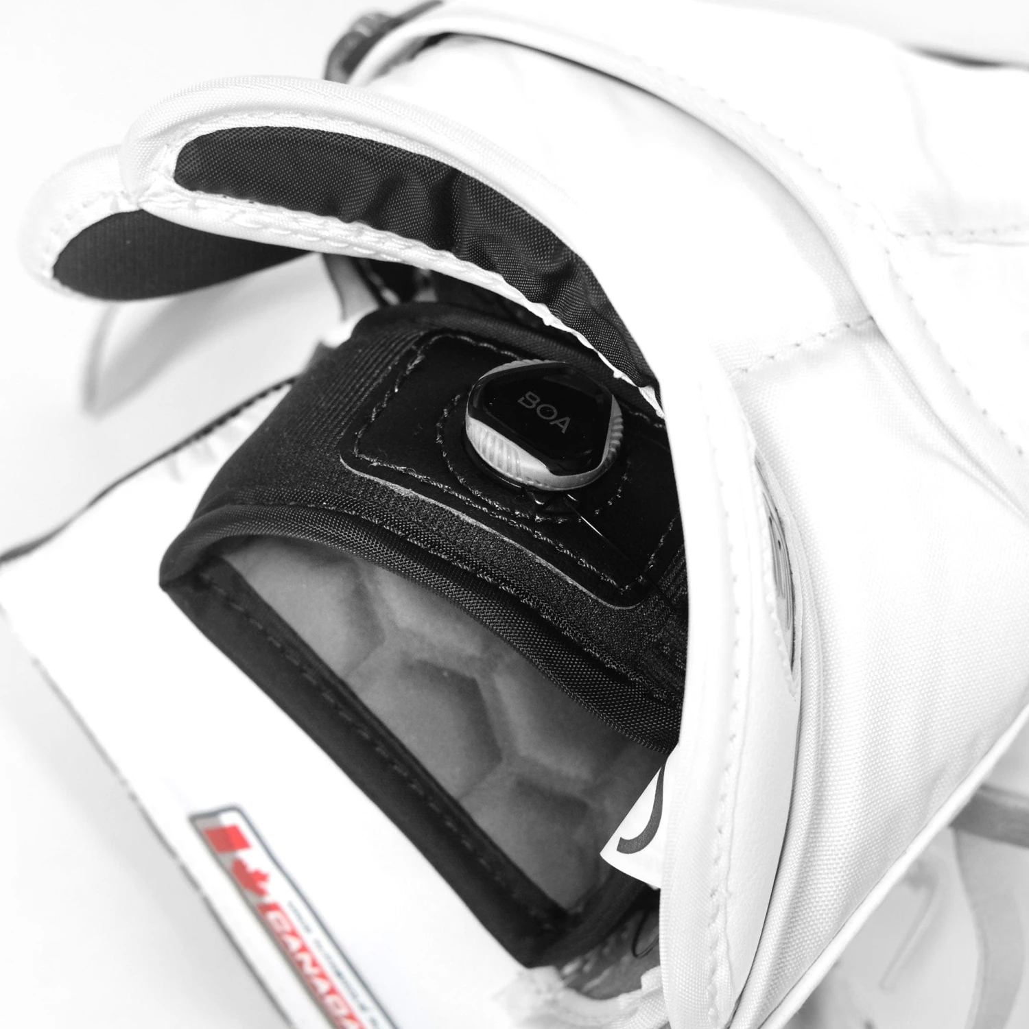 The Optik 3 catcher is made with a traditional JenPro external material, which can be found on nearly all Brian’s goalie equipment.