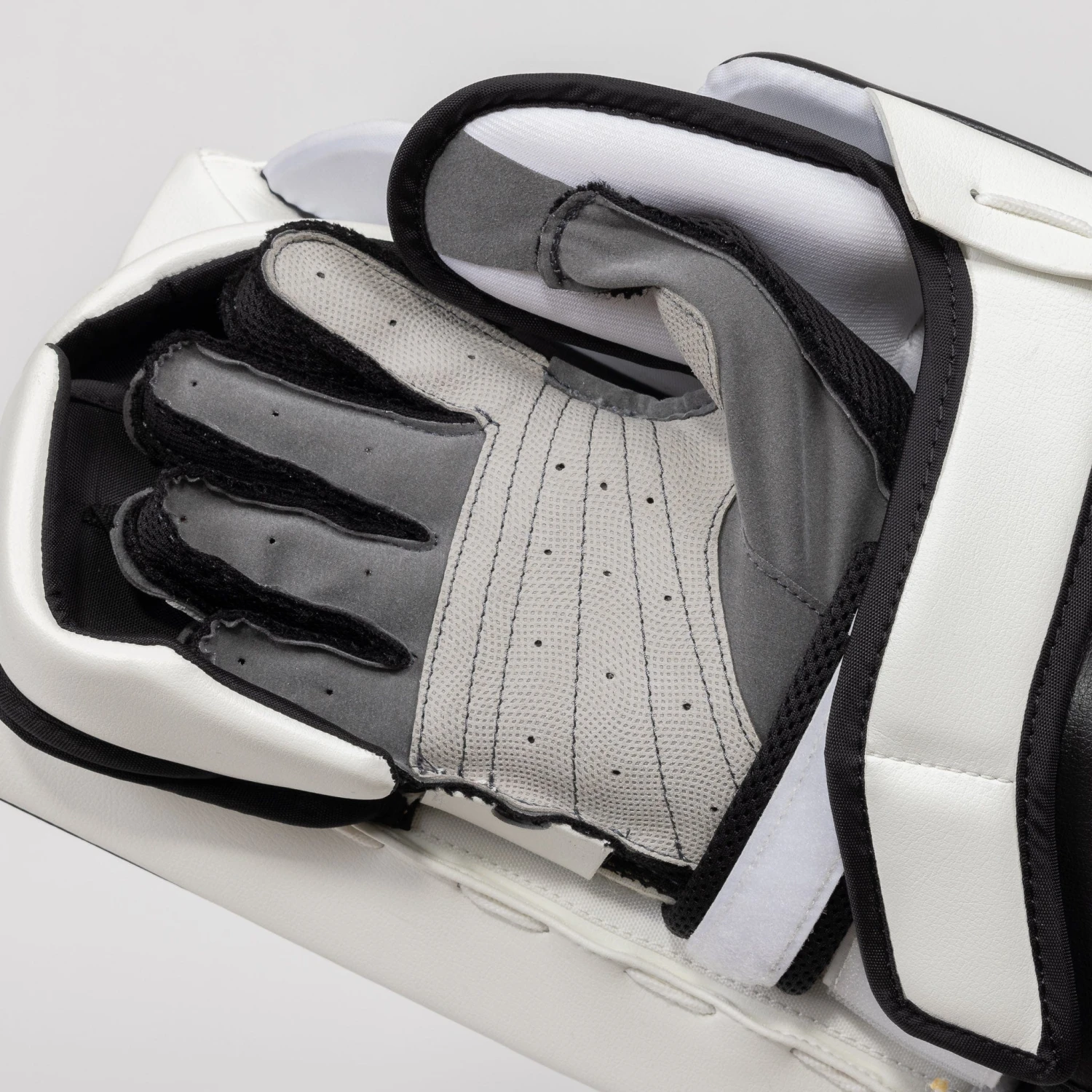 The OPTiK X3 Intermediate Goalie Blocker is equipped with a traditional velcro wrist strap, ensuring a secure and customizable fit for goalies of all sizes. The internally laced sidewall, fortified with high-density protection, enhances durability while providing superior impact resistance. This innovative design allows you to confidently make saves, even against the toughest shots.