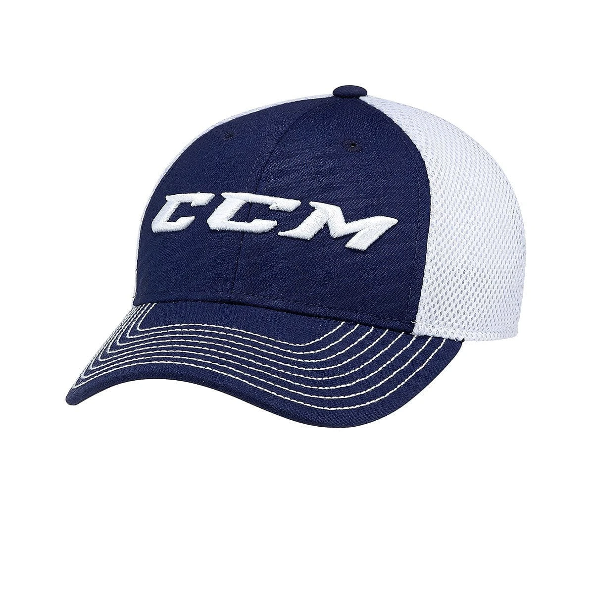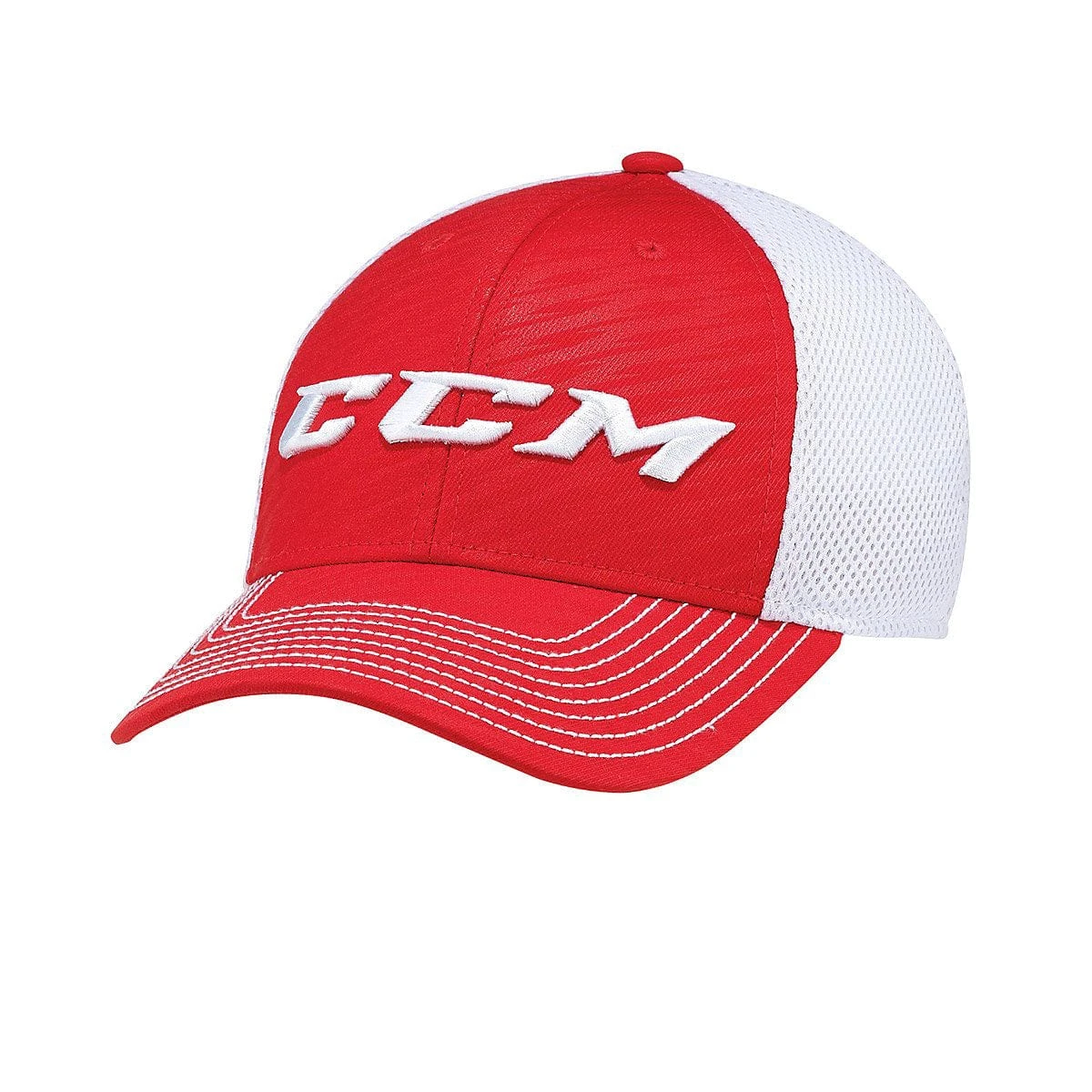The perfectly structured flex fit CCM hat with a mid-crown and contrast colour visor stitching. The raised embroidered CCM logo on the front and a flat CCM logo embroidered on the back gives this hat a unique look. The CCM Core Foam Mesh Flex hat is 100% polyester to give the best look a hat can give.