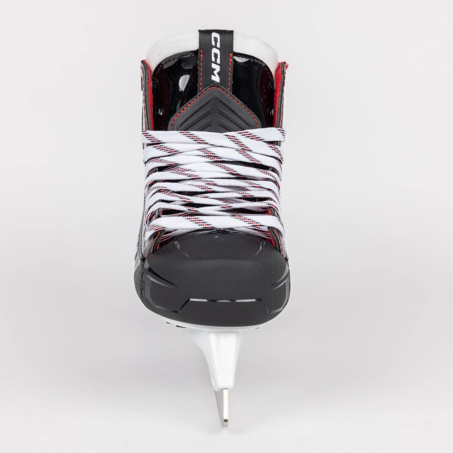 The skates use CCM’s quick-release Speedblade XSG holder with a bladelock system, coupled with CCM’s XSG 10F27. This steel is built to provide a long-lasting edge for sustained performance, and the new 10F27 profile encourages a forward-leaning and more aggressive goalie stance.
