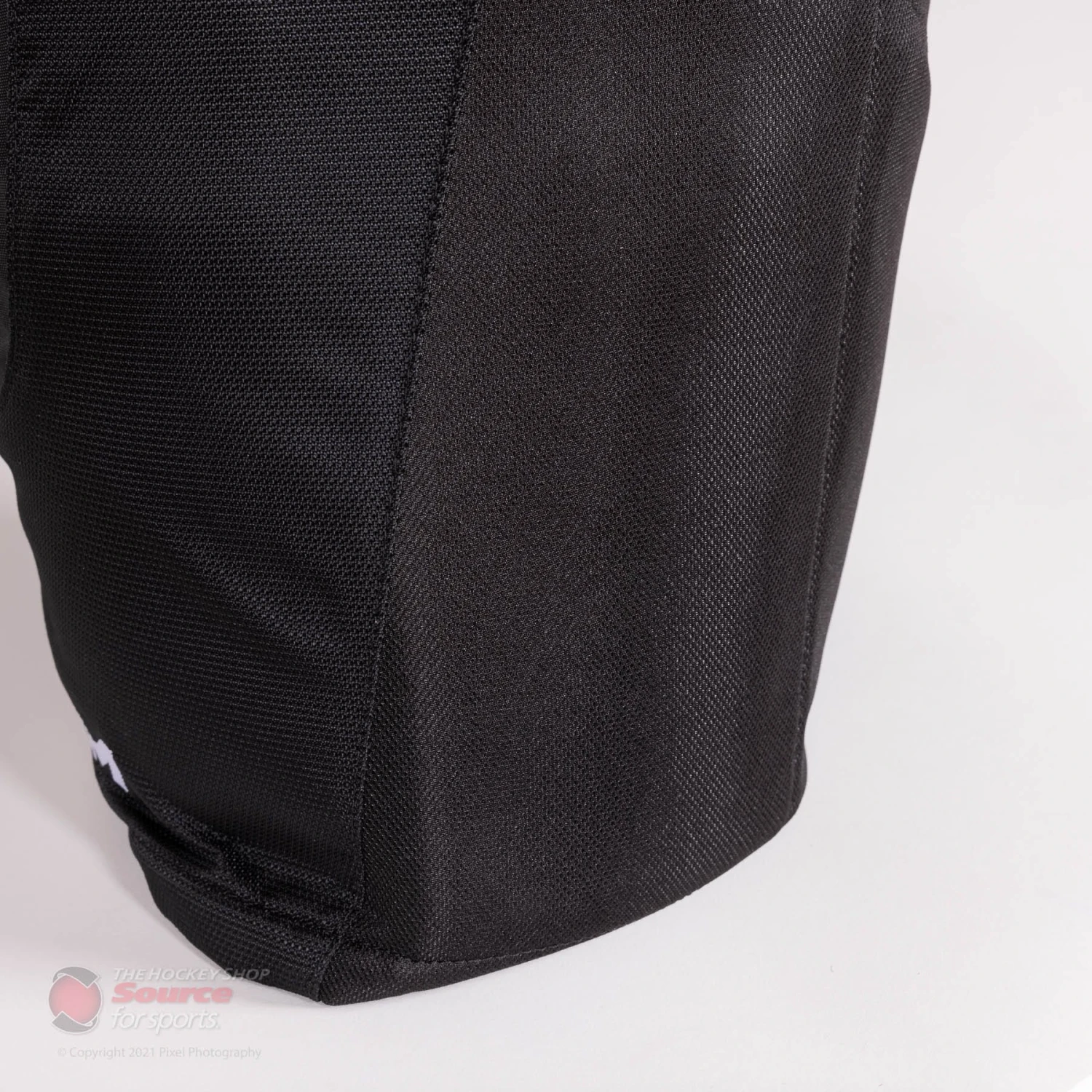 Features a leg zipper on the inner thigh to widen as needed or allows players to put on their pants after their skates.