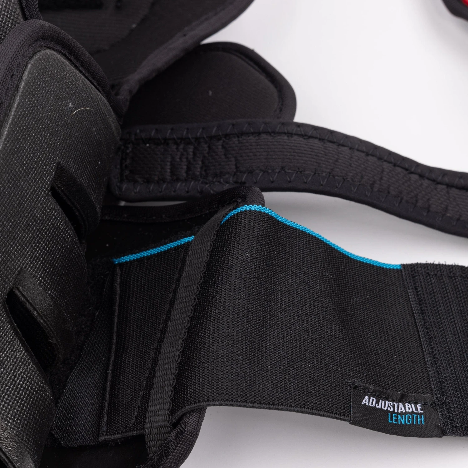 The FT6 Pro uses an upper lock strap with a comfort cushion, as well as a length-adjustable calf strap to keep the pads locked in place on your leg.