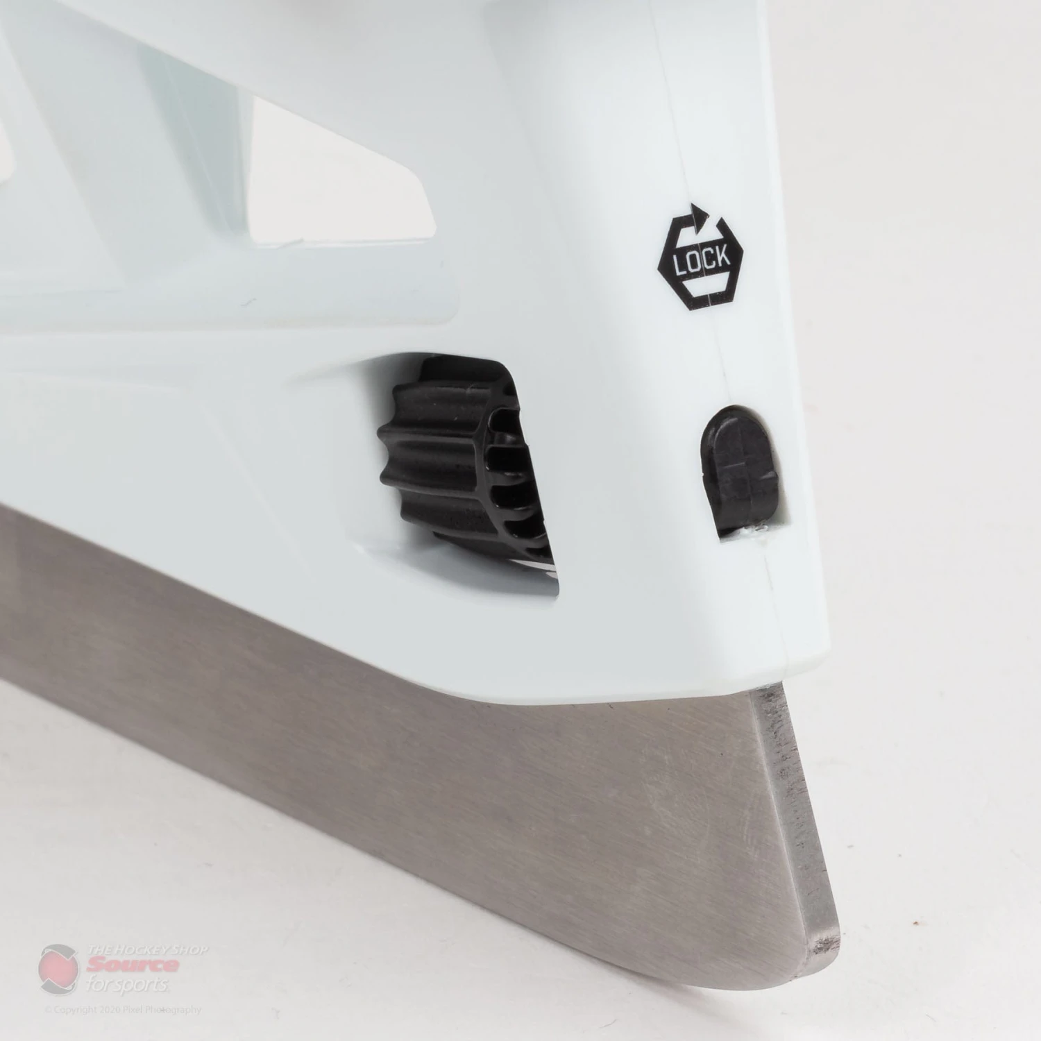 The holder on the CCM 9370 Goal Skates is the CCM Speedblade XSG holder featuring a new quick release dial blade lock system allowing goalies easy switching of blades whether its before a game or in between periods.