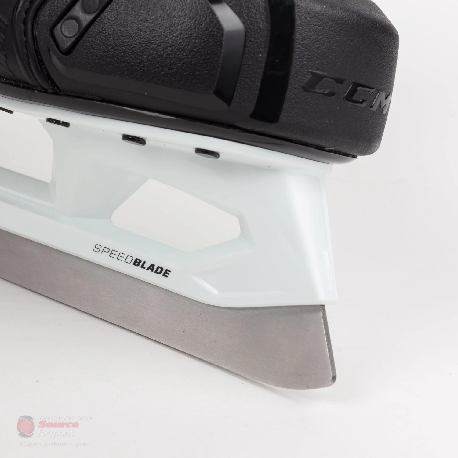 A new CCM XSG1 +2mm stainless steel runner comes on the 9370 SR goalie skates. The extra 2mm gives a higher attack angle by sitting taller and longer edge life with more blade available.