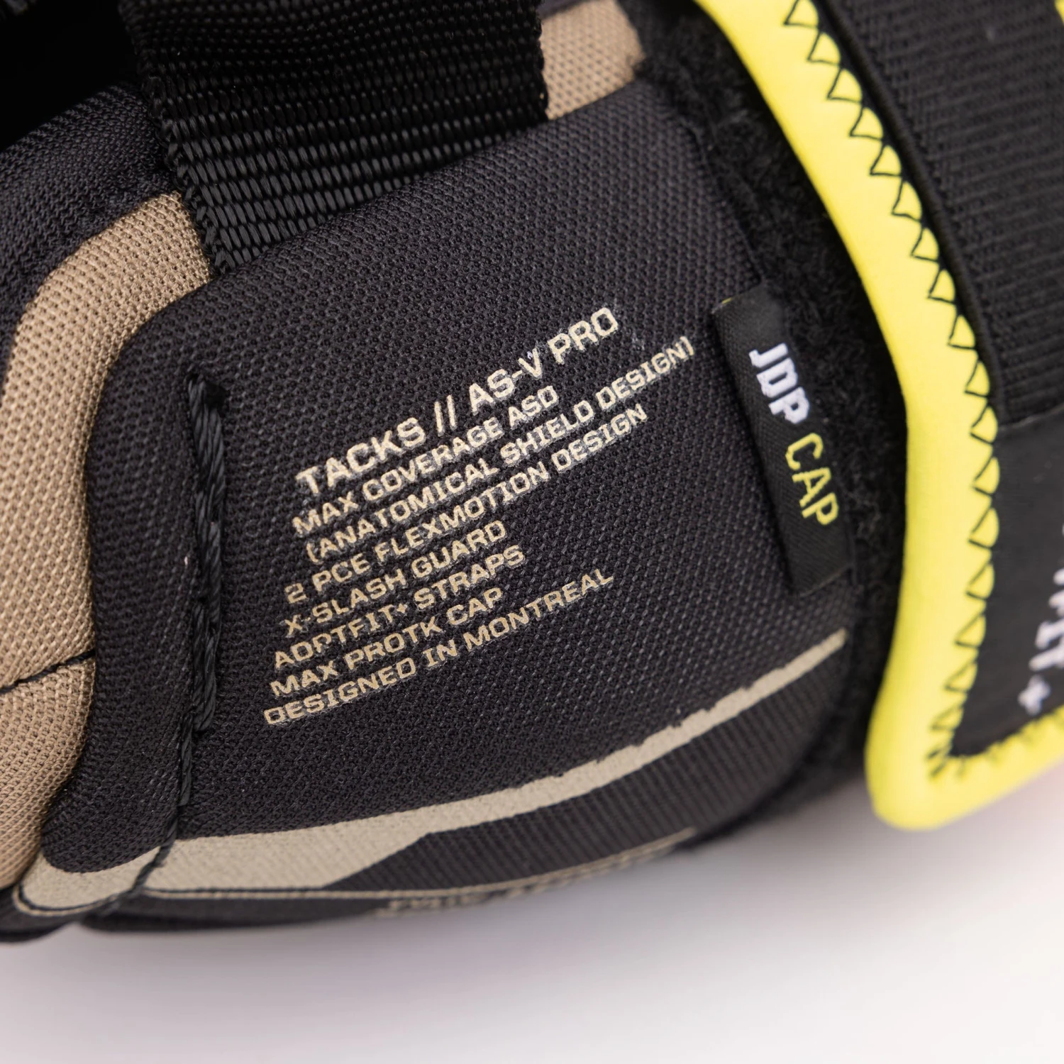 CCM opted for a sublimated, antimicrobial mesh liner for the AS-V Pro. This liner is soft, stretchy, and promotes aeration, keeping you dry and snug throughout the game. The cap at the apex on the inside has an open gap fit for your elbow, keeping all unwanted vibration away from that sensitive area.