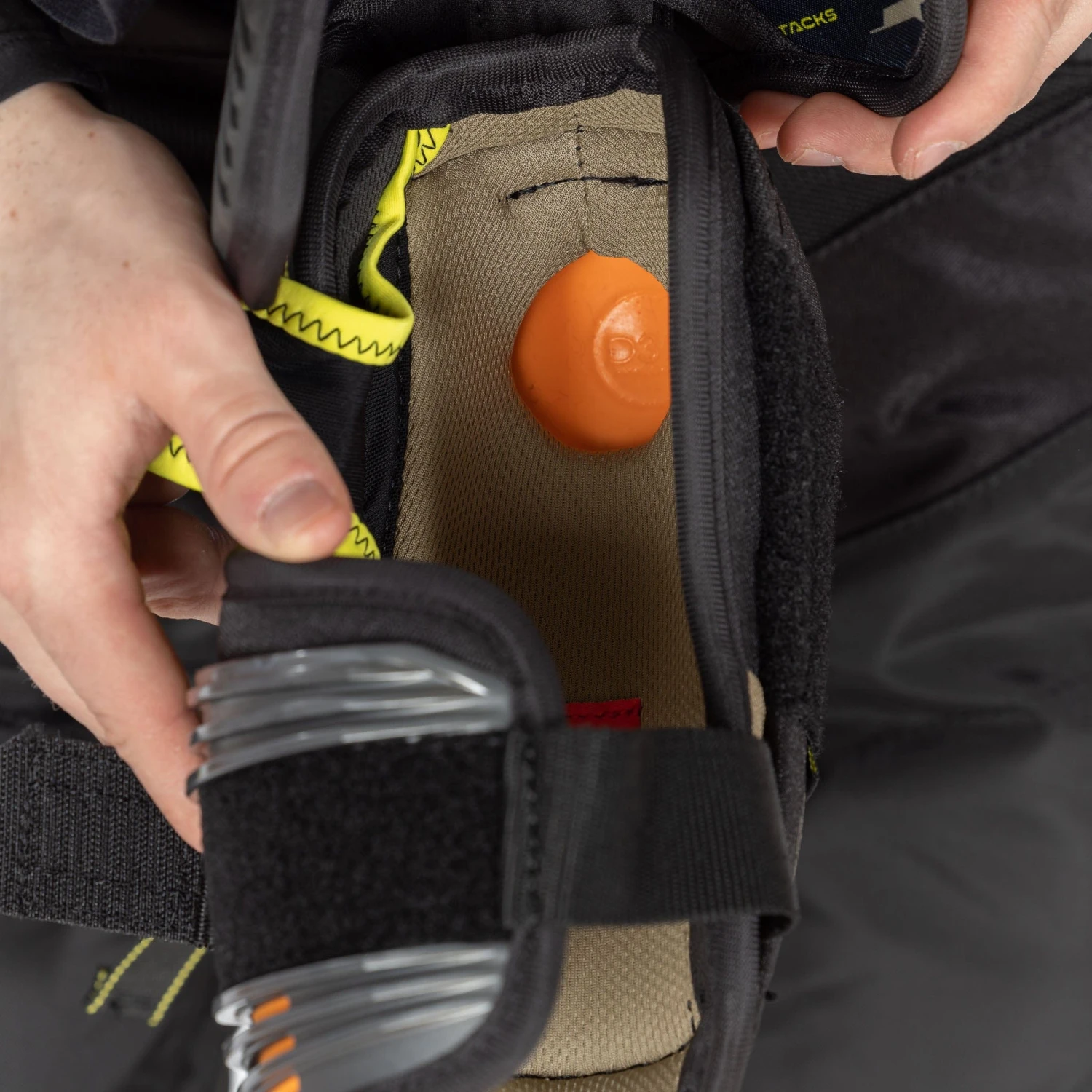 The forearm is equipped with a tough plastic Slash Shield over D3O foam. The injection-molded forearm guard ensures max protection with its superior shock absorption qualities. D3O foam is used in CCM’s top gear, and its unrivalled ability to soak in force on impact is why it serves as a main foundation of their Tacks protective line. The forearm area also includes a JDP cap design meant to disperse force for added protection in that area.