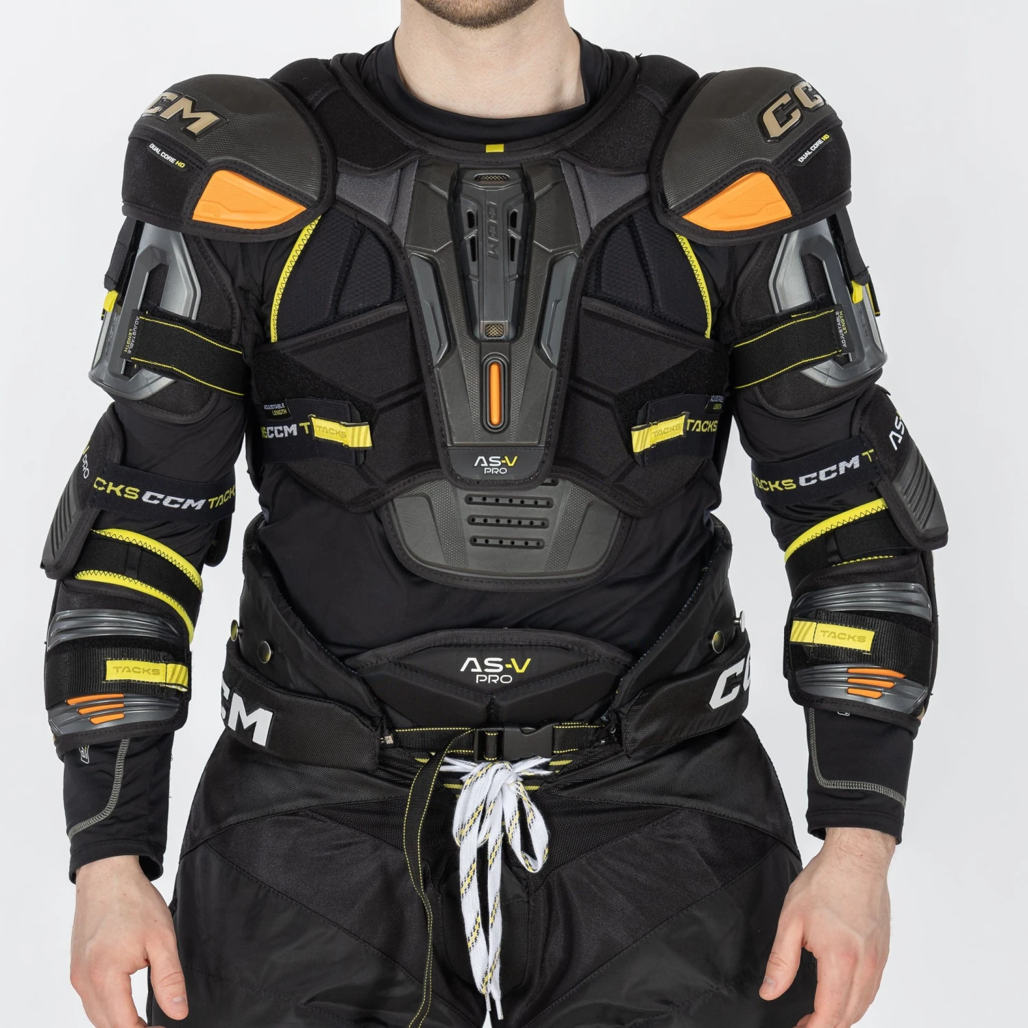 The CCM Tacks AS-V Pro Senior Hockey Elbow Pads come in Small, Medium, Large, and XLarge sizes.