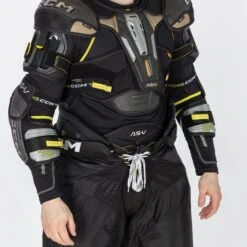 The bicep is covered by a two-piece floating, articulated and reinforced bicep guard. The two-piece construction is built to give you pro-level protection, no matter how you move on the ice.