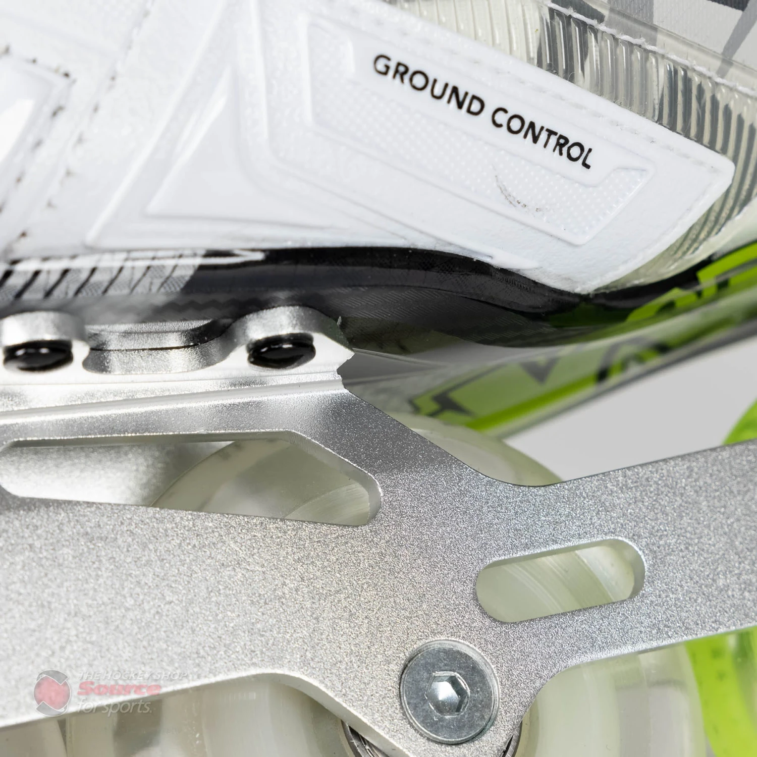 The Injected Tech Mesh boot construction is designed for stiffness and stability, and features ventilation in the quarter package to increase airflow through the boot. This will reduce moisture within the boot while skating. The abrasion guard reinforces potential high wear areas of the skate to increase the longevity of the boot. The clear TPU outsole increases stability and provides a consistent energy transfer while skating.
