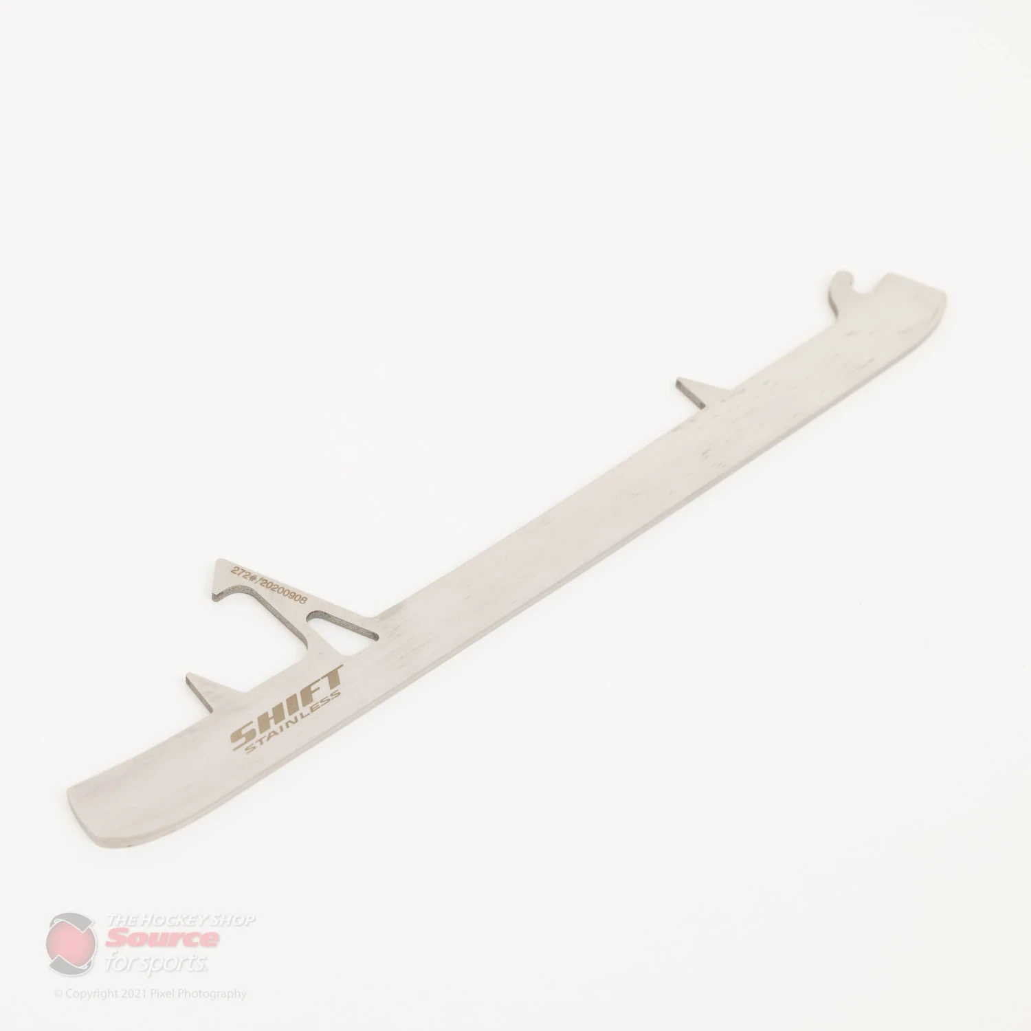After years of waiting, TRUE has finally made a goalie specific version of their Shift holder called the Shift Attack holder. It features the same BenchChange tool-less blade release as seen on the player holder. The steel seen on the TF9 is also brand new; a Shift Stainless 3mm blade comes stock and is a taller steel similar to the LS3G+ from Bauer. Optional offset 4mm Stainless and DLC black steel blades are available for goalies who want that thicker steel seen on traditional TRUE skates.