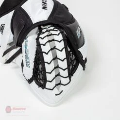 The V9 Pro Carbon XP catcher utilizes a true one-piece cuff reinforced with carbon for increased protection. A bindingless construction is used in order to maximize the blocking surface. A wide, open cuff design allows the V9 XP catcher to sit comfortably in any goalies stance no matter their glove position.