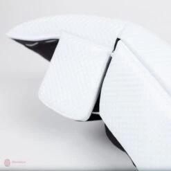 The knee cradle of the Vaughn SLR 2 keeps the goaltender secure with two key features. The angled velcro knee strap allows for a secure but free moving space for the goaltenders knee. The second key feature is the suede on the inside landing pad itself. This material limits the slip and allows goaltenders to stay more solidly on the knee stack.