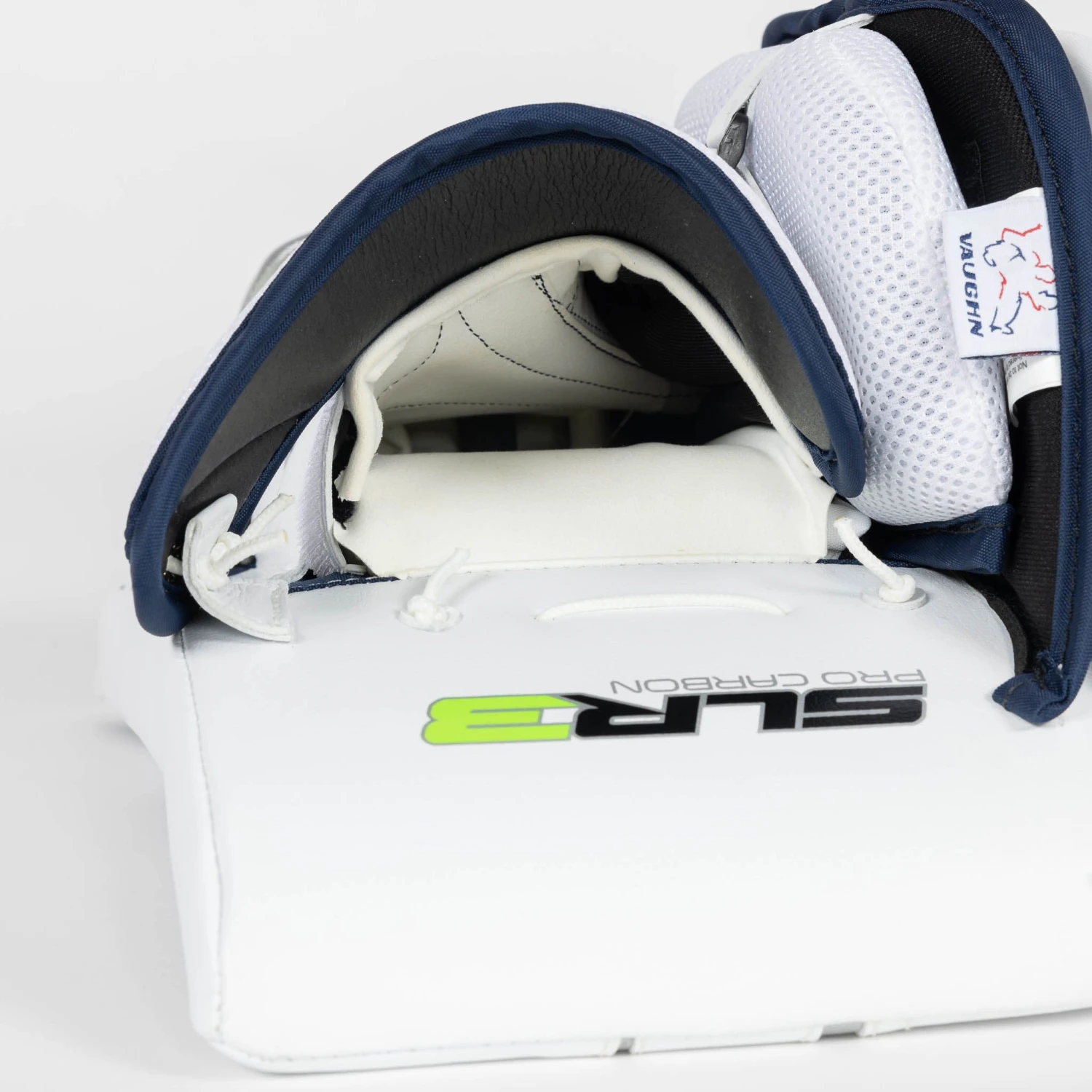 The internal board of the blocker uses thick Super HD foam for good protection. A Pure Carbon insert has been placed on top of the foam for better pop on the rebounds and for additional coverage. The Pro Carbon insert is also in the leg pads of the SLR3 Pro Carbon set, which complements the blocker and its emphasis on rebound control.