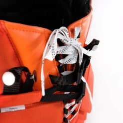This Vaughn Ventus SLR3 Pro Carbon Senior Goalie Pant comes in a custom Edmonton Oilers colour with a striking orange base and striking blue and white stripes on each side.
